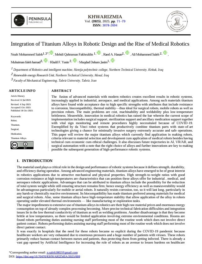Raed Abdulkareem Hasan, Mahmod A. Abdulqader , Azil Bahari Alias , Noor A. Hussein , Omer Khalil Ahmed , Jafar Keighobadi , Ali Mohammed Saleh , Zeyad K. Hamad , Noah Mohammed Saleh , Musaria Karim Mahmood