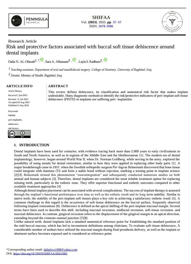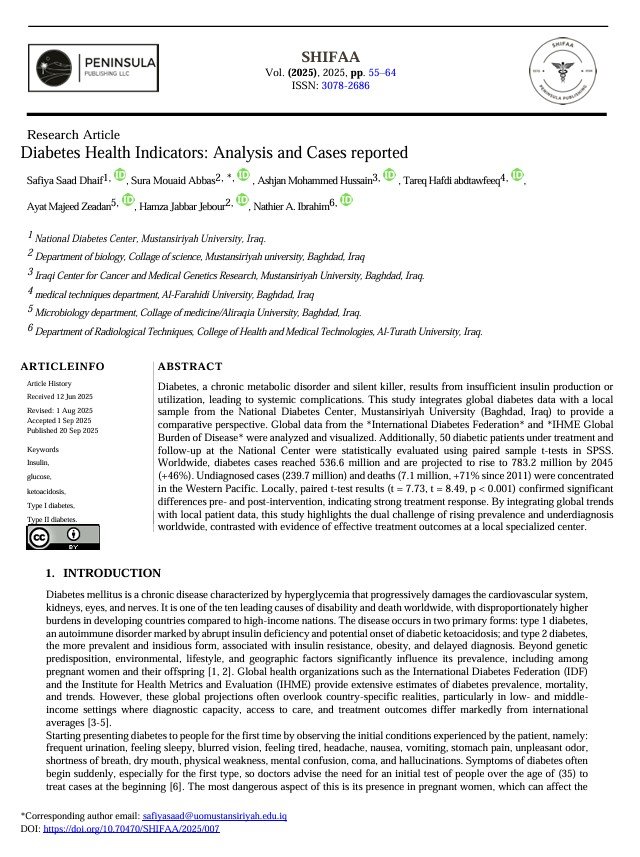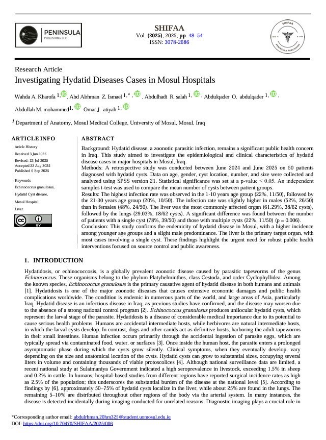 SHIFAA (E_ISSN 3078-2686) is an esteemed academic journal dedicated to publishing high-quality medical research that advances the understanding and practice of healthcare. As a publication of Peninsula Publishing Press, located in Dubai, Shifaa aims to bridge the gap between innovative medical research and clinical practice, promoting evidence-based solutions that address global health challenges. Our journal welcomes original research, reviews, and case studies across all areas of medicine, fostering a platform for scholars, clinicians, and researchers to share their findings and contribute to the medical community.